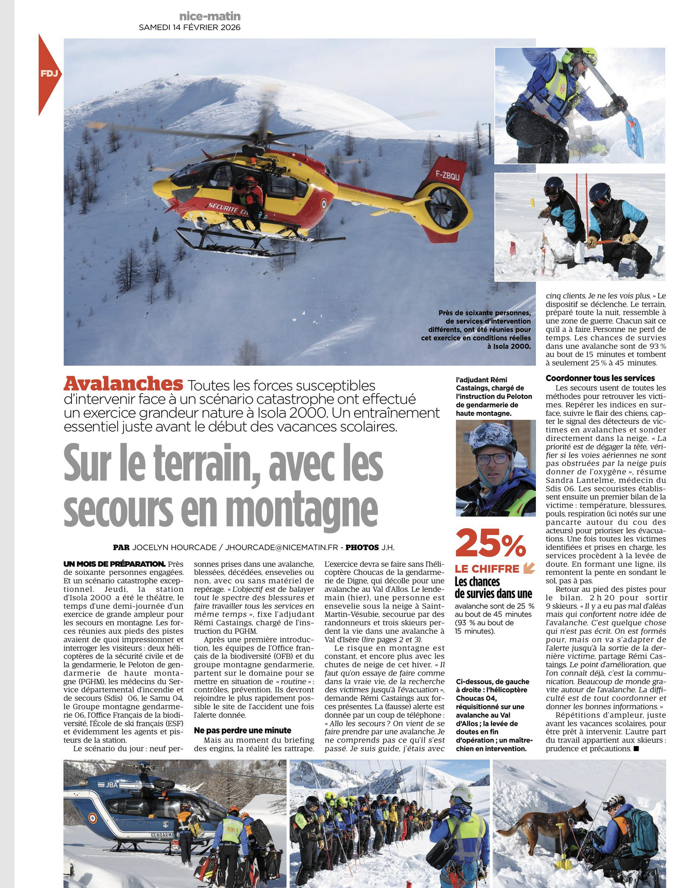 - L’article de Nice‑Matin décrit un exercice grandeur nature à Isola 2000 mobilisant gendarmes de haute montagne, pisteurs, médecins et hélicoptère, pour un scénario d’avalanche de masse.