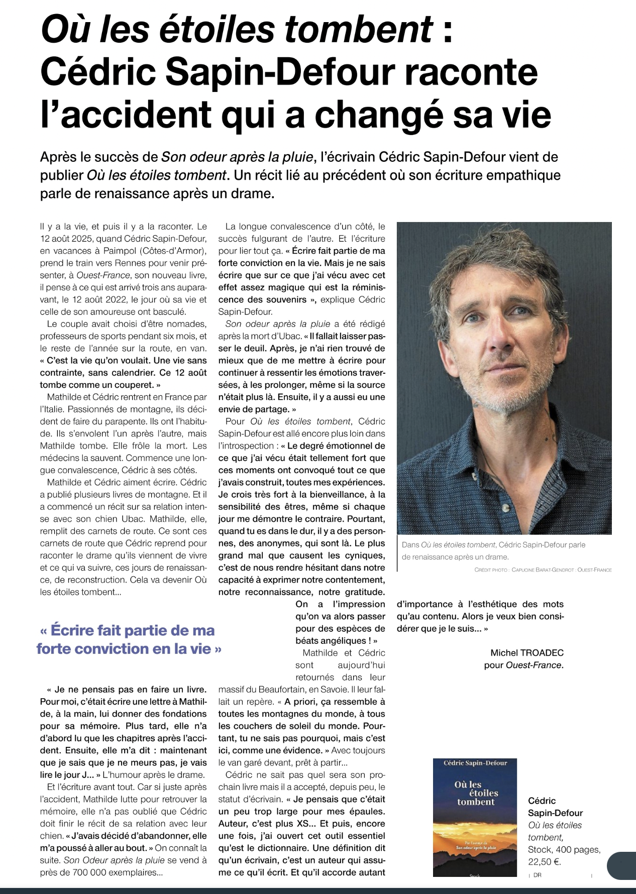 L’article sur Cédric Sapin-Defour retrace le bouleversement provoqué par l’accident de parapente de son épouse, Mathilde. Ancien grand sportif, il raconte dans « Là où les étoiles tombent » comment ce drame a non seulement fragilisé son équilibre puis celui de son couple, mais a permis une forme de renaissance, de redéfinition des priorités et de l’amour. Le récit met en avant la reconstruction après le choc, la rééducation de Mathilde et la leçon profonde d’amour et d’entraide qui en découle. C’est aussi une réflexion sur l’aide aux autres, la gestion du quotidien après un accident, et la capacité à retrouver l’équilibre quand tout s’effondre.