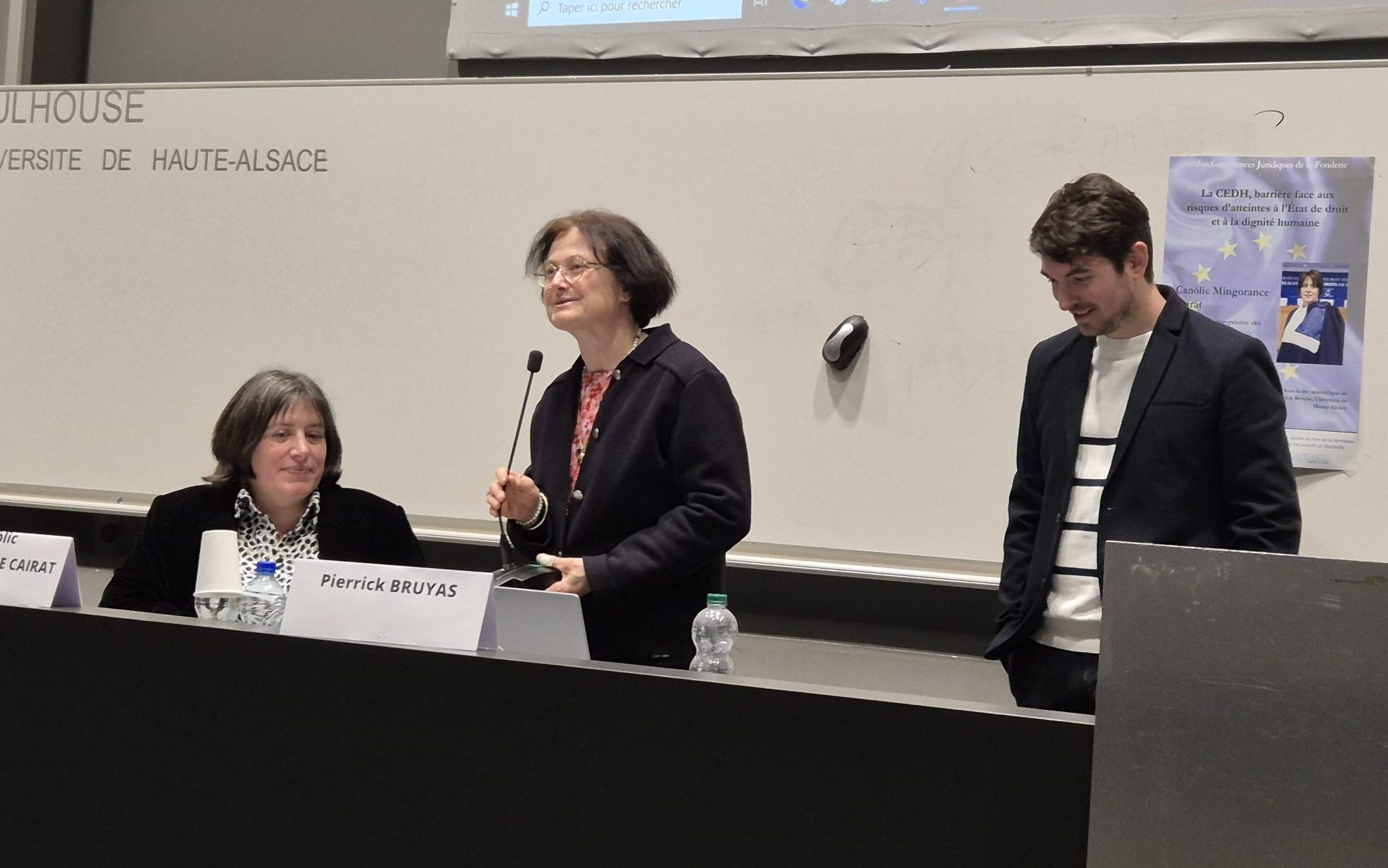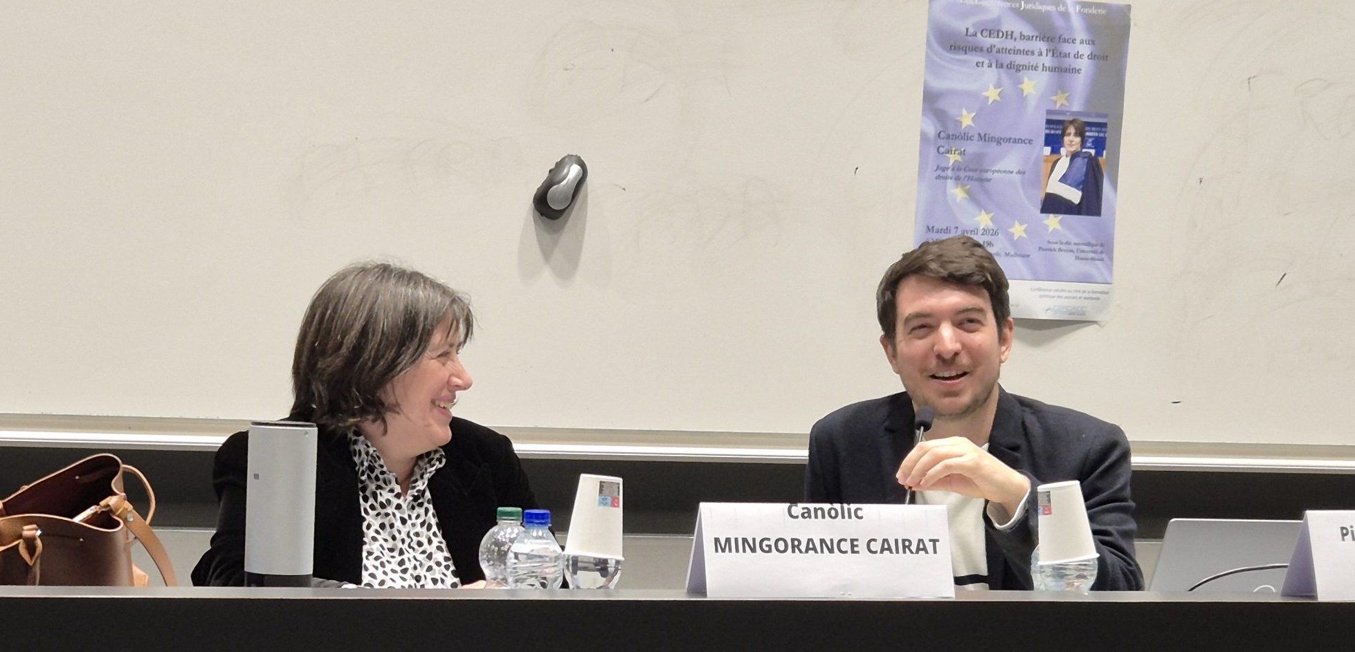 Madame la juge Canòlic Mingorance Cairat est juge à la Cour européenne des droits de l’homme (Cour EDH), élue au titre de l’Andorre. Le 7 avril 2026, elle a fait l’honneur à l’Université de Haute-Alsace, au CERDACC et au Département Droit, de donner une conférence sur « La CEDH, barrière face aux risques d’atteintes à l’État de droit et à la dignité humaine » sur le Campus Fonderie, à Mulhouse (https://www.jac.cerdacc.uha.fr/event/les-conferences-juridiques-de-la-fonderie-la-cedh-barriere-face-aux-risques-datteintes-a-letat-de-droit-et-a-la-dignite-humaine/). Cette conférence rentre dans le cadre des « Conférences juridiques de la Fonderie ». Elle a été animée par Pierrick Bruyas (Enseignant chercheur contractuel et membre du CERDACC).
