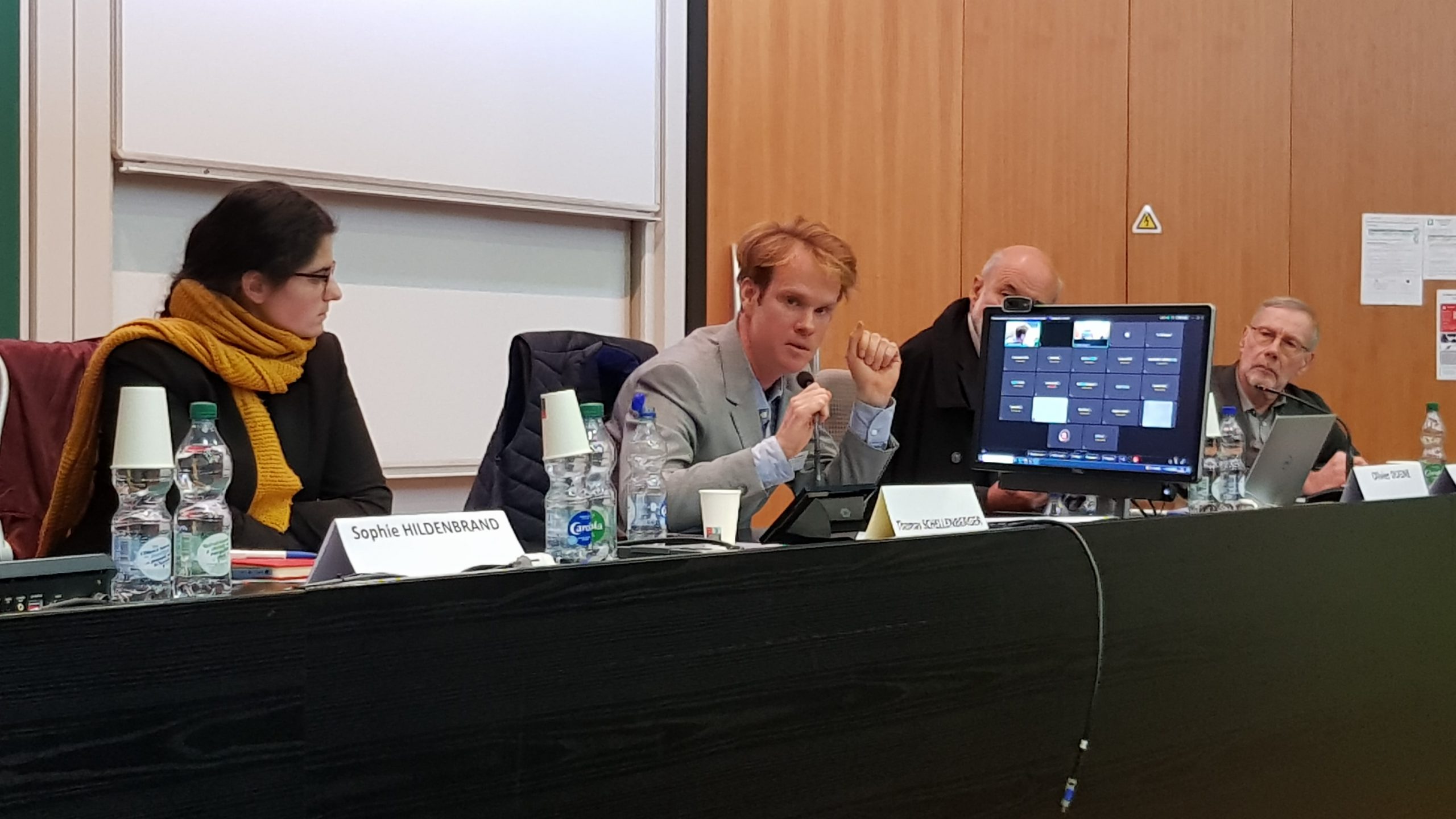 La seconde table ronde débute avec l’intervention de Thomas SCHELLENBERGER (Maître de conférences en droit public à l’université de Haute-Alsace, membre du CERDACC). Il expose les enjeux cruciaux de la gestion des déchets radioactifs dans le contexte actuel de relance de l’énergie nucléaire. Son intervention met en lumière les tensions entre les impératifs techniques, les considérations environnementales et les défis juridiques posés par ces déchets à vie longue.