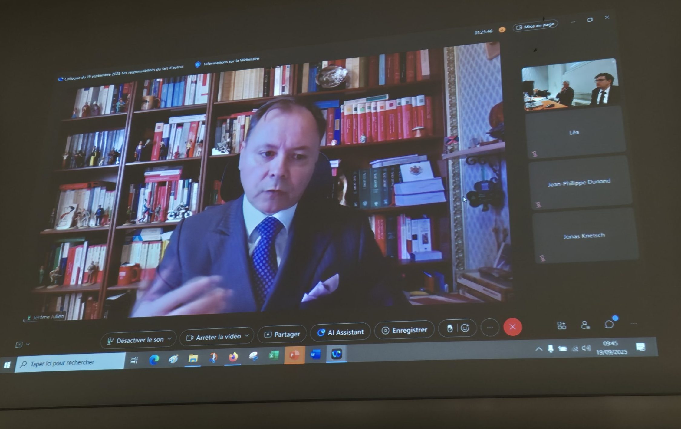 Lors de son intervention, Monsieur Jérôme Julien (Professeur à l’Université de Toulouse I Capitole) revient sur la notion de responsabilité civile du fait d’autrui, à la fois familière mais théoriquement incertaine. Bien qu’ancienne, elle reste mal comprise, oscillant entre une exception au principe de responsabilité personnelle et un mécanisme autonome.  Il a ainsi soulevé la question de son unité conceptuelle : existe-t-il une responsabilité du fait d’autrui unifiée ou seulement une juxtaposition de régimes distincts ?