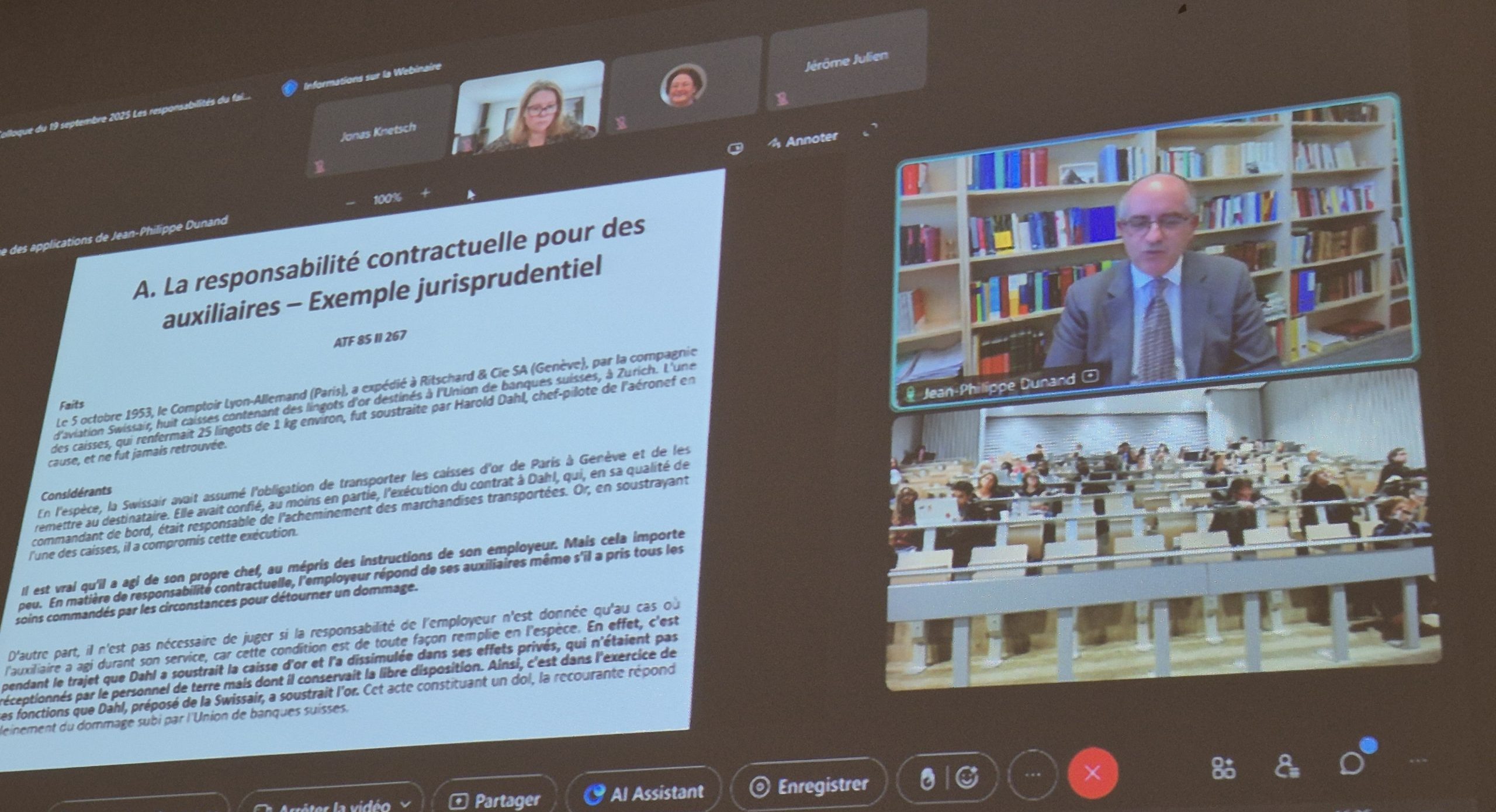 Monsieur Jean-Philippe Dunand (Professeur à l’Université de Neuchâtel) aborde les principes généraux de la responsabilité du fait d’autrui et leurs applications pratiques en droit du travail.